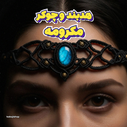 هدبند مکرومه با سنگ لابرادوریت | استایل خاص و هنری